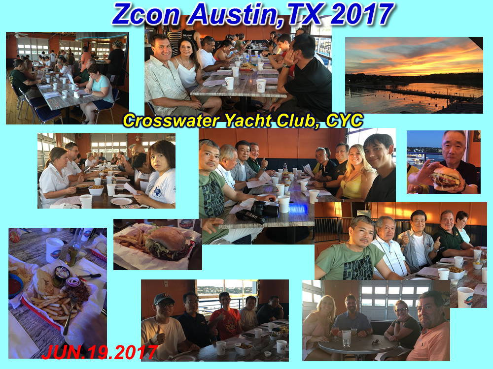 06月21日(水曜日) ○ 早速に2日目には、「”Z”アワード」のコンテストが有り。 ホテルから約40分ほど離れた、レイクサイドので開催です。 朝の僅かに空いた時間、ZproTOKYOのバナー・記念用に 米国の友人達から、サインを頂きました。 代表へ!! 私たち、松尾氏・山下ご夫妻・神林(Shinkichi)は、朝食後 ロビーに集まり、NISSAN・Pathfinder(パスファインダー)2107年 の新車・最高グレード車に乗り、まずは市内見物に。 大型ショッピングモールに行った後は、市内中心部へ。 20分ぐらいで古い市庁舎へ! 荘厳な建造物で、広い中 庭を探索してから内部を見学しました。 昼食は近くのラーメン店へ行きました。 日本食のブームなのか店内は満席でしたね。 さて、会場 は午後からなので、早々に向かいました。 場所は郊外の北側に位置する、「Oasis on Lake Travis」。 当日は灼熱の猛暑の中でしたが、広大な湖の丘の会場で 歴代のZ達をクラスに分け、審査員がジャッジをいたします。 驚いたことに、ZprojectTokyoのバナーが掲げて有った。 とても嬉しかったですね、Shinkichiと何度もスマホのシャッ ターを押していました。 この場所には、ホテルやレストランが古代イタリアシチリア 地方を真似た造形で、構成されているリゾート地でした。 Austinの郊外ですが、ここテキサスのZcon2002年サン・ アントニオでの猛暑から想像するには違い過ぎる! 緑林が多く、広大な湖が丘陵に点在している、緑と水の 豊な町でした。 猛暑を避け、レストラン内で休憩! 山下夫妻と共に神林 らと、スムージーを頂きました。 5時ごろに閉会となり、各アワードの表彰は最終日のバン ケットの会場で、発表・トロフィーの授与となります。 ここのレストランで夕食(Dinner)をいただきます。 Starlight Terrace roomが売りのようで、とても素敵な夕陽 を見ることが出来ました。 私は運転手なので、地ビールを頂けなかったことが残念! 昨年の開催地カナダからも、お世話になった友人達とテー ブルを並べ、見知らぬ隣の老白人ご夫妻の2組とも、松尾 氏や山下氏と懇談されていました。 今回の為に製作した、キーホルダーは思いのほか好評で この隣のご婦人達から、キスをされ嬉しい思いもしました。 8時40分、SunSet 夕陽が沈みましたが、長い夕刻時間 でした。 夕陽が沈む10分ぐらい前の方が湖面に映る、 赤い夕陽が反映して、とても幻想的でした。 ディナーが終わり、さてこれからは神林さんをナビゲーター に、「UpRev」 Open Houseに、市内へ移動。 2年振りに再会するアップレブ社のスタッフは、私を覚えて いてくれたかな。 当時の写真と、今回の記念品など渡し ました。 深夜のオープンハウスなのでしたが、Austinに 本社が有ったことは、渡米する数日前まで気がつきませ んでした。 すっげ?〜会社でした!