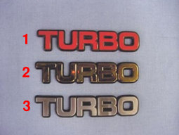 ターボのエンブレム各種 リアゲートエンブレム 1 TURBO(レッド) 完売 2 TURBO(ゴールド) \13900 (輸出専用在庫のみ) 3 TURBO(シルバー)完売 |