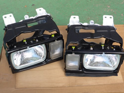 ■ USA(’84−’86) 4灯(フォグ付き)ヘッドライトキット ※専用ハーネス・フォグスイッチ付(純正品) ・取り付け解説書 1・標準ハロゲンランプ付(小糸) 再生品の販売 \158,000より 2・BOSH製ハロゲンランプ。ポジション電球付 ・・・ \0 (製廃入手不可)